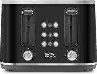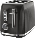 Toasts 2 slices with variable browning control.Extra wide slots fit crumpets and thick bread.