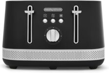 Toasts 4 slices at once, ideal for families.Extra wide slots fit thick bread or bagels.